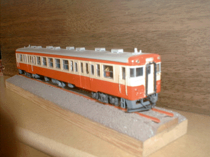 フジモデルのキハ23系両運です。 動力はパワトラック1つで走っていますが、なかなかの走りをみせます。 室内はKATOのパネルライトを取り付け、天賞堂のクロスシートを塗装して取り付け、 乗務員及び乗客数人乗車してます。