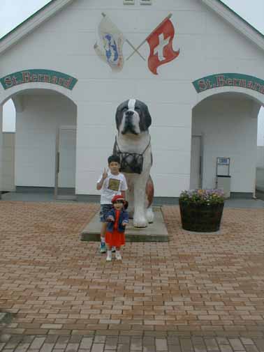| AM9:30 | 那須動物王国。セントバーナード館の前での写真。中は、 セントバーナードとむつごろうさんの写真が飾ってある。 大きなセントバナードだね、ちゃんと尻尾もついていたよ。 |