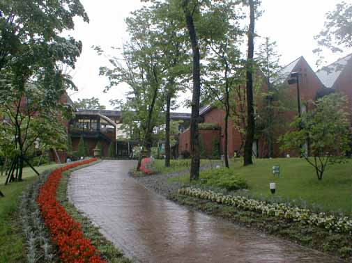 | PM3:00 | 今回の旅で一番行きたかったところです。那須テディベア・ ミュージアム。入り口からかわいらしい熊のオブジェ。 「わーーかわいいね♪」とママとミースケは少し興奮気味。 晴れていたらお外でもいっぱい写真撮れるのにね。 茶色のレンガのすてきな建物。 早く入ろう〜 |