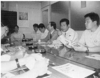 5月18日、元町にある日本油料検定労組を訪問した。取坂、谷口、鮫島の各常任委員。教宣部から芝、山口。事務局から黒崎、塚原が参加。芝教宣部長の司会で自己紹介から始まり、前田委員長ら執行部6人との交流を深めた。 |