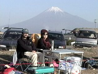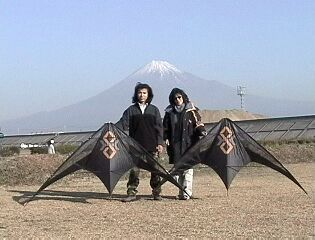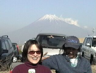 | 記念撮影です。 「カイトを使ってるよーっ」とEメールでPizazz Kiteworksに画像を送ろうかな。 バックはなんといってもMt.Fujiですね。