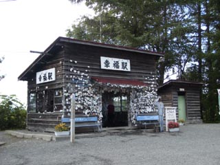 [09/01] 1時過ぎに帯広空港に到着。レンタカーを借りてまず、空港近くの幸福駅に向かいました。 ちょっと遠回りして(迷って)「道の駅」で遅い昼食をとり、幸福駅に到着。 壁には名刺やら写真が貼ってあります。