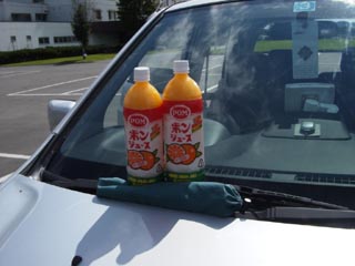 | [09/03] 昨日の大会の賞品のポン・ジュースです。 ペアバレーで4チーム中、1位と思いがけない結果でした。 持ち帰り、しっかり飲みました。