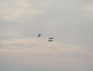 和凧と戦闘機。もちろん和凧が手前。
