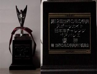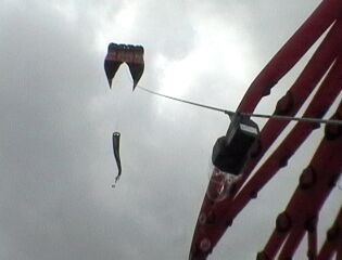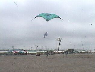 [05/03(いきなり3日目)] HANDS、ペアバレーの演技中です。 7m/s前後の強風の中、Pizazz Ventに300ポンドラインを使用。 ちょこちょことしたミスはそこかしこに。。。。 でも、最後まで通せました。