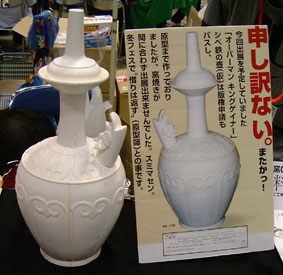 まぁ、全体的には今回も「造形レベルは高いけどバカなもの作る人は減った」という傾向がさらに強くなっている気が。そして個人ブースを圧迫する元凶とも言える食玩が今回はイマイチ振るわず、おかげで客足は……どうなんだろ? う〜ん、そろそろ「これじゃ面白くない!」と思って、気合いと狂気のカタマリのような造形物を出品する人に会いたいですねー。ちなみに今回もジョジョ関係は発見できず。誰かジョリーンの |