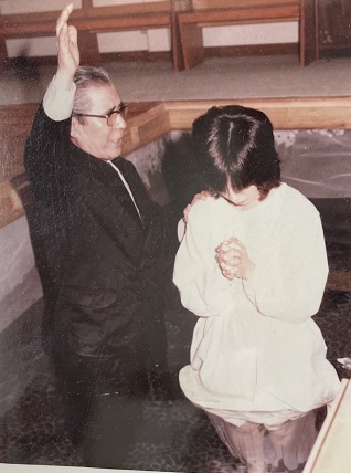10月になって、献身者のSさんから、「今月の洗礼式が今年最後の洗礼式ですから、洗礼を受けませんか?」と叉勧められました。今は一年中洗礼式が行われていますが、当時は10月が最終月だったのです。私は依然として決心がつきませんでした。私は十二指腸潰瘍が出来やすい体質(占いの罪からもきている?)で、しばらくは症状が落ち着いていたのに、洗礼式の10日くらい前から急にみぞおちが痛くなりました。私は変に辛抱強く、そのままで病院には行きませんでした。でもその痛みは日に日に増すばかりでした。こんなに痛いのは何か理由があるのだろうと考えました。色々と心の葛藤がありましたが、聖霊によって自然に洗礼へと導かれたのです。でも、この痛みがなかったら洗礼を受けなかったかも知ません。病気を通して救われるのも、つくづく感謝だったなと思います。
