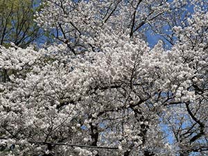 テニスができた。桜もまだ満開が続く。今日は都立青山高校(テニス場入口の秩父宮ラグビー場と神宮球場の真向かいにある)の桜の写真を下に掲載してみた。家での昼食時に窓から近くの宮前公園(目黒区)の桜が大きく開花しているのが見えたので食後歩いて見に行った。数分歩くだけで素晴らしい桜を見ることができた。まさに満開。快晴の下、見事な桜。下に写真を掲載したが桜のこの瞬間の美しさを目にすることができたのは幸いだった・・。 |