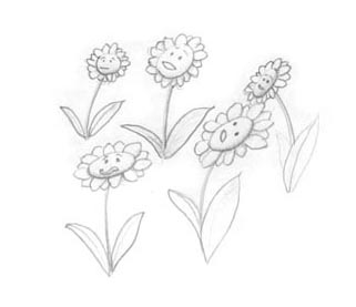 そのこえをきいておどろいたのは、まわりにさいているはなたちでした。 みたこともない、えだのないおおきなきが、 とつぜんやってきて、きょうからずっと、 たっているというのですから。 「なんだ、こりゃ、」「えだや、はっぱが、はえてないぞ、」 「よこにひろがるねっこも、ないよ、」 はなたちは、いろんなことをいいだしました。 つぎのページ