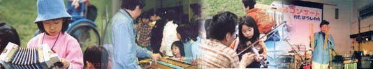 これは、武蔵野子ども祭りで行なったワークショップで、私が所有する様々な楽器 を、子ども達に自由に触ってもらおうという企画です。 音楽家の子供など、特異な環境を除いては、普段目にしたり、ましては、触った り出来ない楽器に、自由に触れ、音を楽しんで、情操の何処かにその記憶をとど めてもらえると嬉しい、という想いで始めました。 バイオリン、アコーデオン、SAX、シンバルほか20種類以上の楽器をもちこ んで、触ってもらった所、親の方が夢中になってしまうなど、楽しいひととき でした。 また、同時に子ども達に簡単な楽器を作ってもらい、童話の語りに合せて参加し てもらうと言う事も行ないました。 その時の様子はココに写真があります。 その時話した物語はココをクリックしてください。 2002年は、杉並上井草児童館で、中高生の楽器体験を、また大人の語りのワーク ショップ等に参加させて頂き大人のための楽器体験を行いました。 2003年は、その想いが嵩じてBS日本テレビの「Kids ビーンズ」火曜日「音楽王 国」という子供向け音楽番組を作らせていただきました。(2006年9月終了) 2005年、2006年、杉並善福寺児童館でハンディを持つ子どもの民族楽器体験をや らせていただきました。 2006年クリスマスは川崎市の学童に音楽の贈り物をさせていただきました。 このワークショップも、ご希望があれば、随時、どこへでもうかがいます。 私が所有する楽器リスト 大人向けの音楽活動 老人ホーム、デイサービスセンターなどに伺い、音楽のステージを行なう活動も 行なっております。 2002年は、武蔵野市のデイサービスセンターで、クリスマスイブ、コンサートを やらせて頂きました。 2005年は「依田プロジェクト」の一員として小平の病院の老人病棟へ伺いました。 2006年2007年「まーさん洞」のメンバーとして日本赤十字病院(武蔵境)でコン サートを。「フラで沖縄」のメンバーとして世田谷の老人デイサービスでライブ を行いました。 上記の活動はすべてボランティアで行なっています。 ご希望の団体、個人など、お気軽にご連絡ください。 メールは、こちらへ、hishida@gol.com