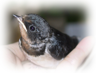 ひょんなことから、ツバメを保護する事になった私達の経験が 同じような境遇になった人達のために役立てばと、これを書く 事にしました。同様に私も、保護した人のHPが、とても参考 になったからです。 家のチュイ(ツバメの名前)は、6月末から9月17日まで、 我が家の一員となり、逝ってしまいました。 2003年6月30日深夜、私は中央高速のとあるサービスエ リアで、トイレに入りました。 月曜の深夜だったので、閑散とした広いトイレの手洗い場で、 よりによって私が手を洗おうとした洗面台に、小さな奇妙な塊 が、落ちていました。 それは、まだ産毛も抜けきっていない、ツバメの雛でした。 見上げると、天井間近に点検孔に通じるはしごがあり、そこに 巣が出来ていました。親ツバメが、巣の外でとまっていました。 その巣から、約5メーター下の洗面台に落ちた雛は、何故か水 びたしで、仮死状態でした。 私は、その雛を抱き上げてティッシュで濡れた体を拭き、なん とか戻せないかと、売店のおじさんの所に持ってゆきました。 「いやあ、持ってこられても困っちゃうなあ、大きな脚立が無 いと戻せないし、一度人間が触るとまた落とされるって聞くし なあ・・・」 「掃除の人なら大きな脚立があるでしょ?掃除の人はいません か?]と私 「もう、今日は帰ってしまったよ、いやあ困ったねえ」 といいながら、自分は関わりたくないという匂いをぷんぷんさ せているおじさんに、少々腹を立てた私は、「ならいい!! 私が何とかする」そう言い残し、そこを出ました。 どうせ、そこに預けても、何もされず、数時間で死んでしまう でしょう。 私は過去に、捨てられた小猫を抱き上げた事によって、その仔 の一生をだいなしにした事が有り、後悔と、自責で、そうした 小動物を連れてかえる事に、かなりの抵抗感があったのですが 広い手洗いの、自分の目の前に落ちていたそのツバメは、きっ と何かの縁があって、そこに居たのだろう・・・などと、自分 に言い聞かせ、連れて帰る事にしました。 車の中では私のパートナーがずっと手の中でだいていました。 しかし、雛は、鳴く事もせず、ぐったりと眠ったままでした。 つぎのページ