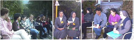午前中は地下のサローネに一堂に会しシンポジウムからはじまりました。Sr.ジルジーナが「Today's world challenging the Volunteer Movement」というテーマで話され続いて大学で人間学を教えておられるロベルト・ラフィーノ氏の「Intercaltural communication」。そして企業人としてボランティアに関わっておられるサマンサ・パロンボ氏の「ボランティアは組織的で政治のバックがないと困難である」という話。最後にNGOでネットワークを作り性的虐待等の深刻な問題を克服していこうと訴えるリリアナ・レオーネ氏の提言と、2時間以上に及ぶ実に内容の濃いシンポジウムでした。 ![]() さていよいよ分科会1です。はじめは14のグループが発表をします。それぞれ興味のある分科会に参加してディスカッションに加わるという形態です。私たちは「Casa Main Tokyo」というテーマで「自立を支援する家」とそこに暮らす2人の女性の話をしました。 続いて分科会2では「日本のストリート チルドレン」の話題を提供しました。分科会3では9つのグループの中から私たちも関わり深いフィリピンのグループによる「ミッション・キャンプの活動」の発表に参加させていただき、分科会4では「VIDESJAPANの活動とスカラシップ制度」について発表しました。昼食をはさんでこの分科会が終わったとき、もうあたりは暗くなっていました。日本のようにタイムテーブルを細分化していないので何時に終わるのかわからない!というイタリア流にもやっと馴染んできました。 こうして主要なプログラムが完了したところで、またすべてのメンバーがサローネに集って「この大会に参加して感じたこと」を述べ合いました。発表したい人が進んで壇上に上がり自分の言葉で語るのです。発表しようとマイクの脇に並ぶ人の列はどんどん長くなっていきます。空腹でお腹はグーグー鳴っているにも関わらず、この体験は新鮮な感動で満ちあふれていました。ことにひとりのUKの若者が「今まで私は最高のボランティアをしていると思っていたが、ここに来てそうではないことに気づいた。ボランティアには数え切れないほど沢山のやり方があるとのだと」と淡々と述べていた姿に心うたれました。 |