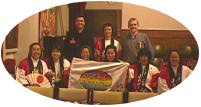 夕食後、サローネには民族衣装に身を包んだ人々が続々と集まってきました。これからアカデミアが始まるのです。私たちは江口先生が拵えて下さったお揃いのVIDES JAPAN特製紅白のハッピを着てスタンバイします。振り付けを考えてくれたのは澤さんの息子さん。さぁ、はじまり、はじまり! アカデミアが終わったのも昨晩同様、深夜でした。部屋に戻ってベッドに身を横たえると足がジンジンしています。もうここに数日滞在しているような錯覚にとらわれます。シャワーを浴びる力もなく眠りに堕ちていきました。 |