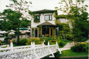 レストランの入口は橋の上に。 |