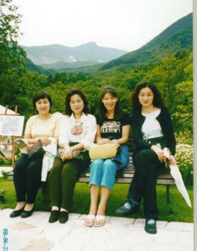 大湧谷をバックに美女勢揃い |