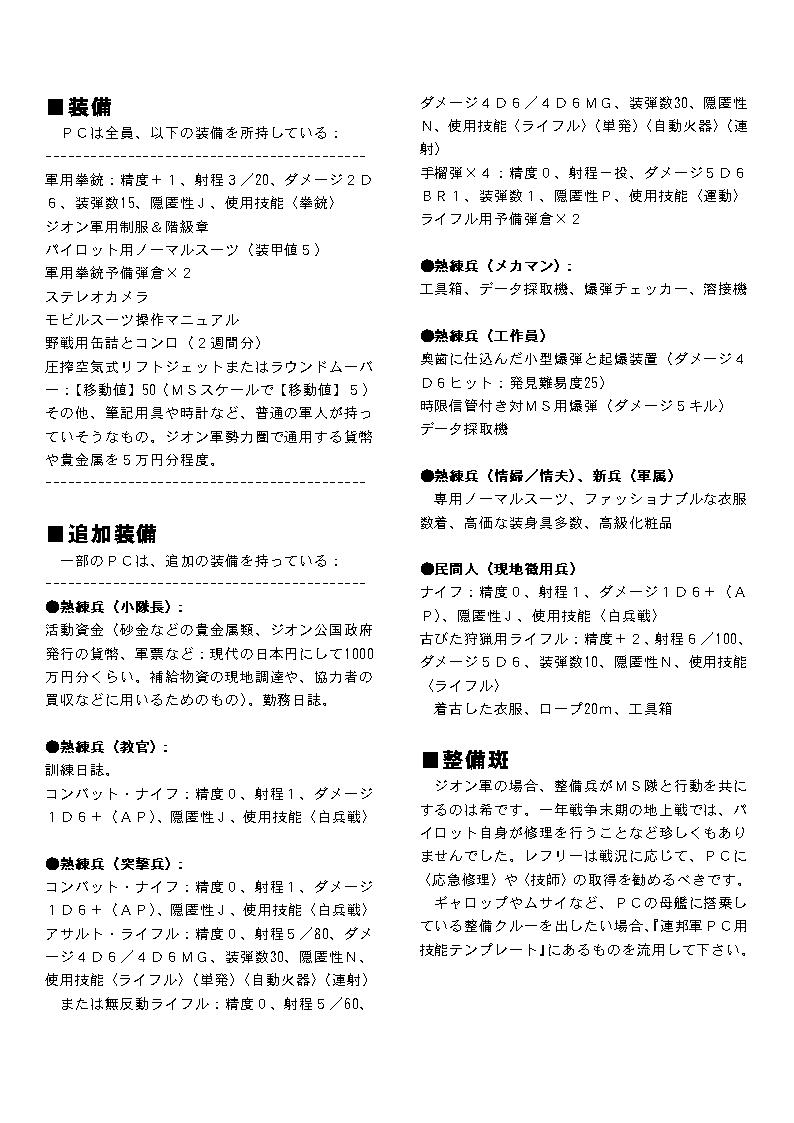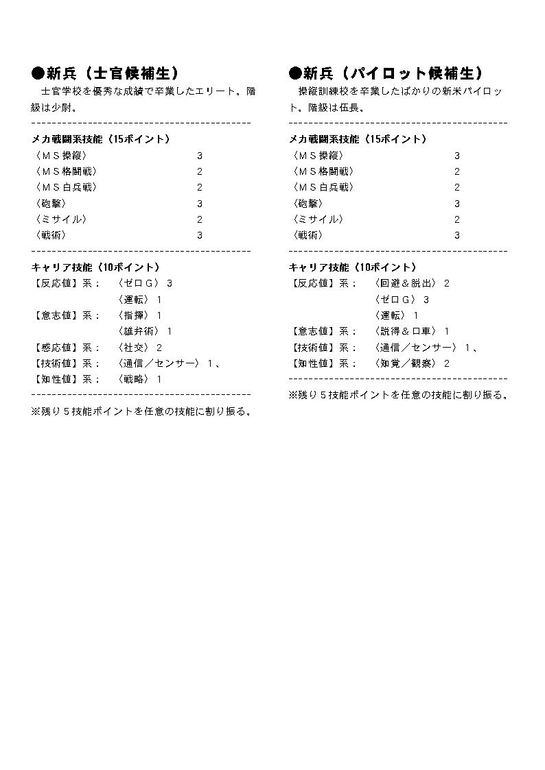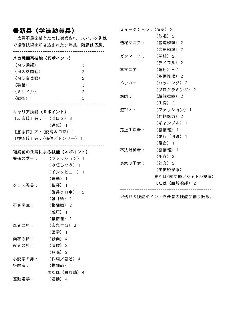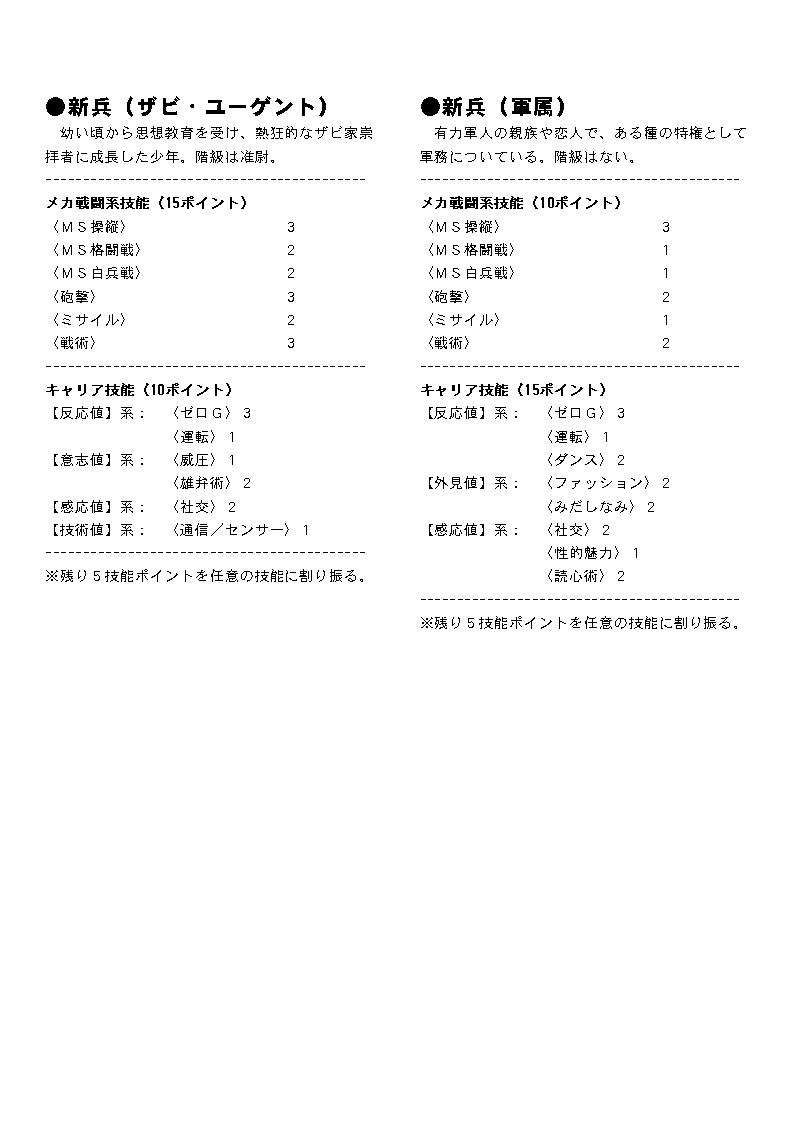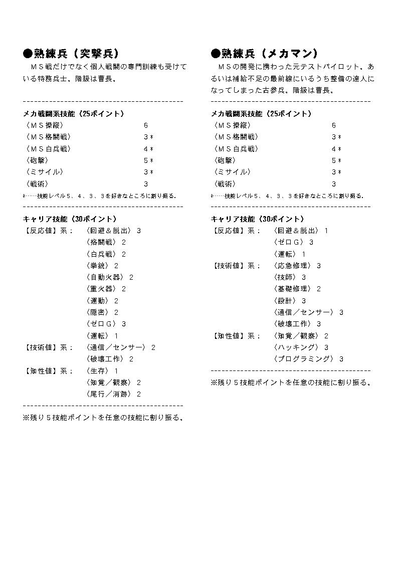 PC作成の手間を短縮するための技能テンプレートです。 ここではレイアウト済みのものを画像に変換したものを掲載してあります。 プリンクアウトして御使用下さい。 テキスト版はこちら: GS-Zeon-Template.txt