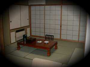 部屋はこんな感じ! 妙に広い、8畳。しかも久しぶりの畳の生活! 変なエフェクトはギャグ。 |
