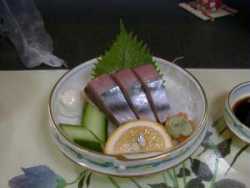 このようにえらくメタリックな鰹! 皮付きで饗してもらいました! うまいよ〜。 |