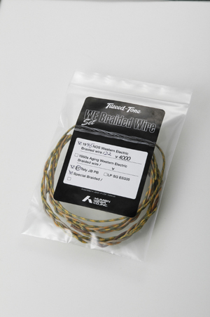 | (1)1945 NOS WESTERN ELECTRIC BRAIDED WIRE /22(画像の商品) 1945年の未使用ワイヤーを使って作られる。60年前の持つワイヤーの音質を得ることは最後だろう。60年近くカリフォルニアのシアター倉庫に眠っていたものである。もちろん数量は限られている。 (2)1950s AGING WESTERN ELECTRIC BRAIDED WIRE /PULP24 50年代から現代まで絶え間なく通電されていたワイヤーで作られる。皮膜はパルプでワイヤーはメッキの無い無垢の銅である。きれいでメロウな音質。銅の音質を良く理解することができる。 (3)1950s AGING WESTERN ELECTRIC BRAIDED WIRE/22 1950年からエージングされ続けて作られた角の無い心地よい音質を持つ。ミドルは少しばかり強く高域はメロウ。50年ほどエージングされた音質を利用 する事ができる。 (4)1960s NOS WESTERN ELECTRIC BRAIDED WIRE/24 24AWGのNOSワイヤーで作られたものである。音質は明るく少しばかりリリカルな感じを受けるだろう。年代は64〜68年にUSA WEで作られたワイヤーをブレイドさせた。被覆は50s Aging と同じ人絹である。 (5)1970s NOS WESTERN ELECTRIC BRAIDED WIRE /22 70年代のNOSワイヤで作られている。被覆はNEと同じ素材,音質はワイルドである。少しばかり荒れている音質を求めているなら良い選択となるだろう。 (6)SPECIAL BRAIDED WIRE (各価格に500円アップ) 上記各ワイヤーのセットをスペシャルブレイデッドした製品。ピックアップからコントロールまでを更にブレイデッドし、振動による音質のの劣化を押さえたもの。通常販売製品の中では最終の形となる。セットはST,TELE,JBの3種類だけとなっている。 |