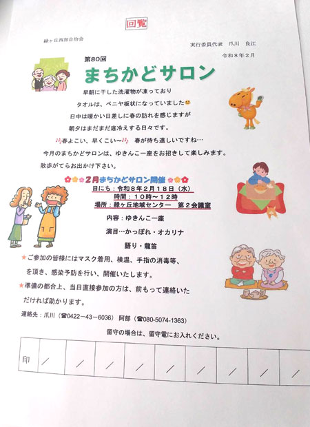 - 2月18日(水)仙川・老人クラブ(対象20名)