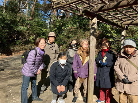 - 1/30(金)青空の下、冬枯れの武蔵野を歩いた。実は社会人1年生だった頃から3年ほど武蔵小金井に住んでいた。当時はまだまだ緑も多かったが、今では新しい?住宅が立ち並びすっかり様変わりしていた。それでも初めて滄浪泉園(小金井)に行ってみて、「はけ」や、古代の遺跡もあって、なかなか興味深い歩きとなった。さながら大人の社会科見学となった。その後 東京経済大学のキャンパスを突き抜けて殿ヶ谷戸庭園へ。久しぶりに男性陣の笠原さん・飯川さんが顔を揃えて参加、他に洸子さん、典子さん、濱島さん、張替さん、杉山さん、私の総勢8人となった。